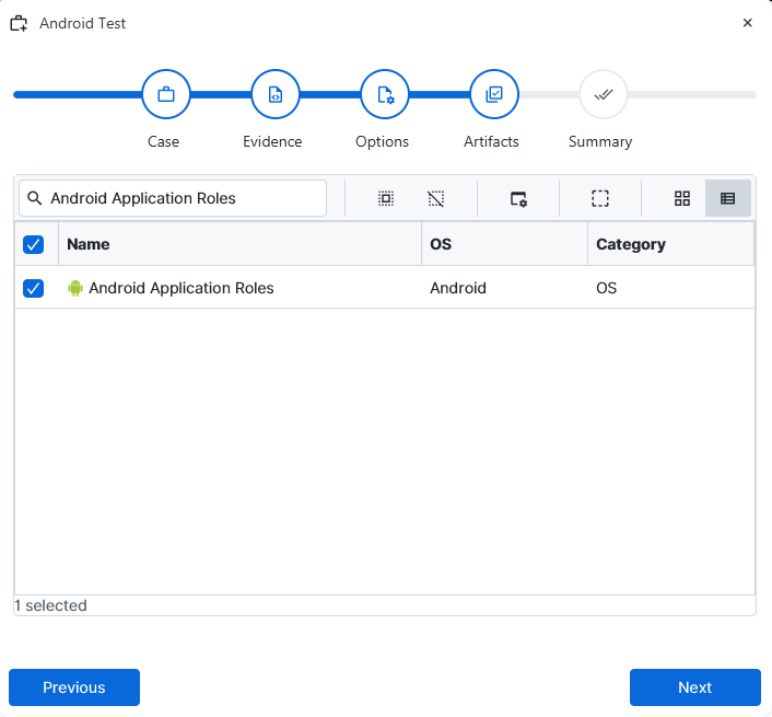 investigation, at the Artifact Selection phase, you can select Android