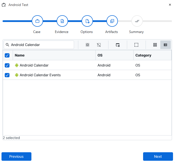 Once ArtiFast parsers plugins complete processing the artifact for analysis, it can be reviewed via “Artifact View” or “Timeline View,” with indexing, filtering, and searching capabilities. Below is a detailed description of Android Calendar artifacts in ArtiFast.