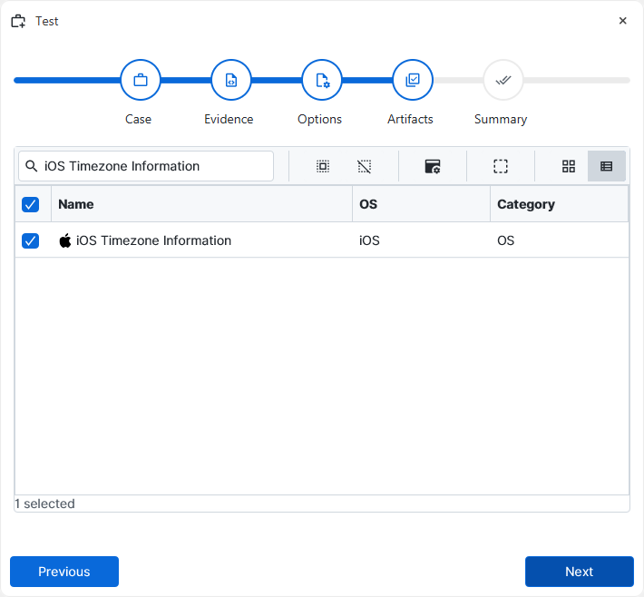 investigation, at the Artifact Selection phase, you can select the iOS