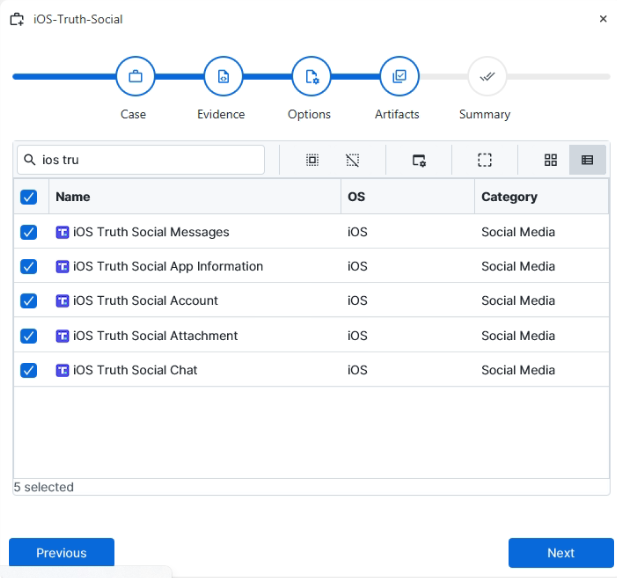 investigation, at the Artifact Selection phase, you can select iOS Truth